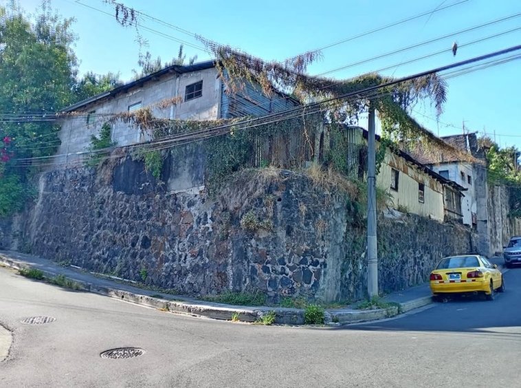✨Terreno en venta en centro de San Salvador, con área de 531.82 v² y propiedad a demoler.🧱🏗️ – De esquina. – Con pendiente de 12° aproximadamente. – Barrio La Vega, cerca de PNC y Destilería Salvadoreña. – Los muros de piedra se pueden rescatar con contrafuertes