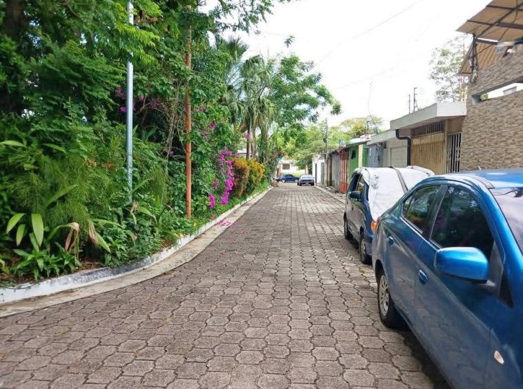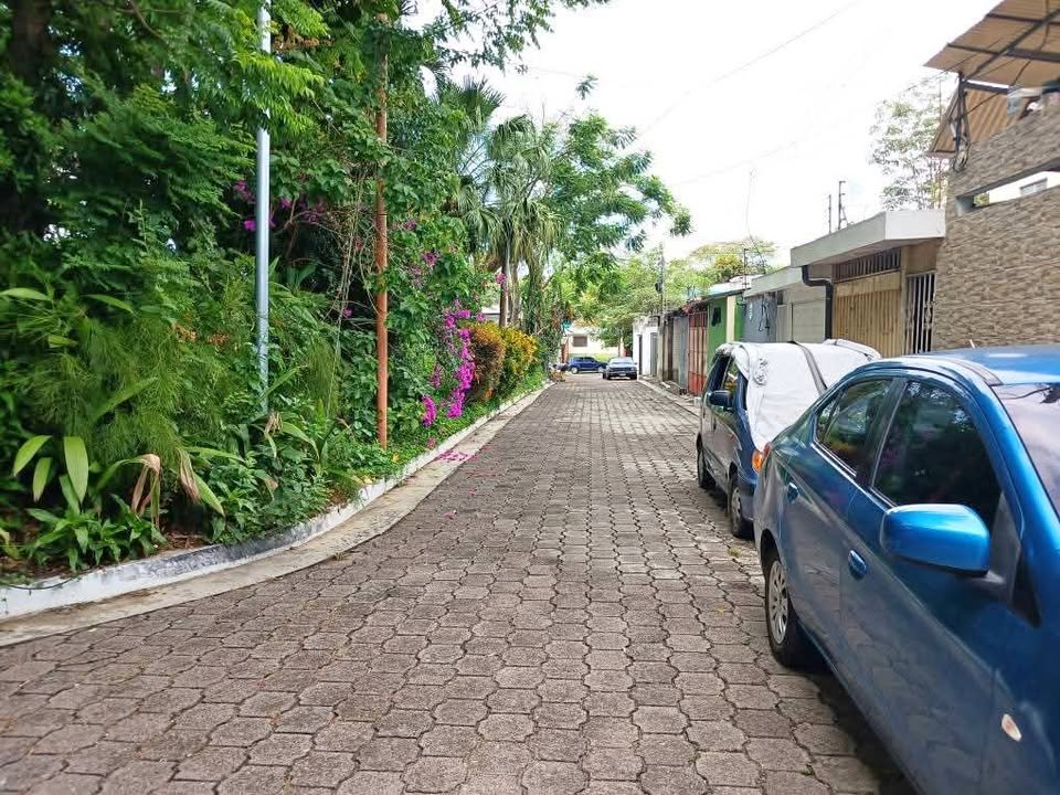 Se vende casa en colonia Jardines del tecana Santa Ana, justo a un costado de plaza Escalon, en pasaje vehicular privado, frente a la casa es área de jardín, casa de 7.5 mt de frente por 19 mt de fondo, en el primer nivel cuenta con cochera cerrada para un vehiculo, 3 habitaciones, 2 salas, 1 baño, cocina y patio, y en segundo nivel: una amplia habitación con terraza, closet y baño completo.