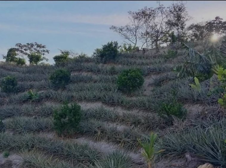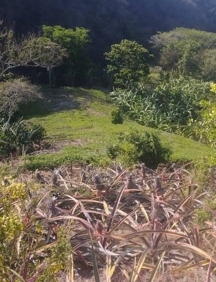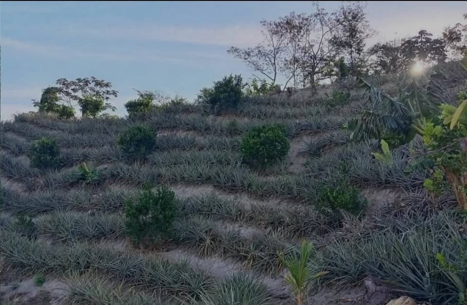 Cuenta con: – 12,000 matas de piña. – 1 manzana y media de guineo manzano – 50 matas de guisquil – Maracuyá en cosecha. – 150 árboles de mandarina Reyna – Cacao – recién sembrados árboles de guayaba Cuenta con nacimiento de Agua abundante y propio.