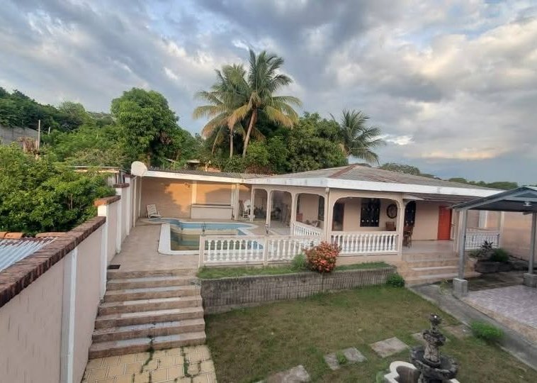 Cuenta con: ✅ 3 cuartos. ✅ 1 baño Comunitario . ✅ 1 baño privado de habitación. ✅ Piscina (Reparar) ✅ Salón de Eventos amplio. ✅ Cocina . ✅ Bodega. ✅ Parqueo Amplio. ✅Terraza. ✅Fuente. ✅Servicios básicos: (Energía Eléctrica, Pozo y Agua Potable, Telefonía) ✅Total del Terreno 604.24 m²