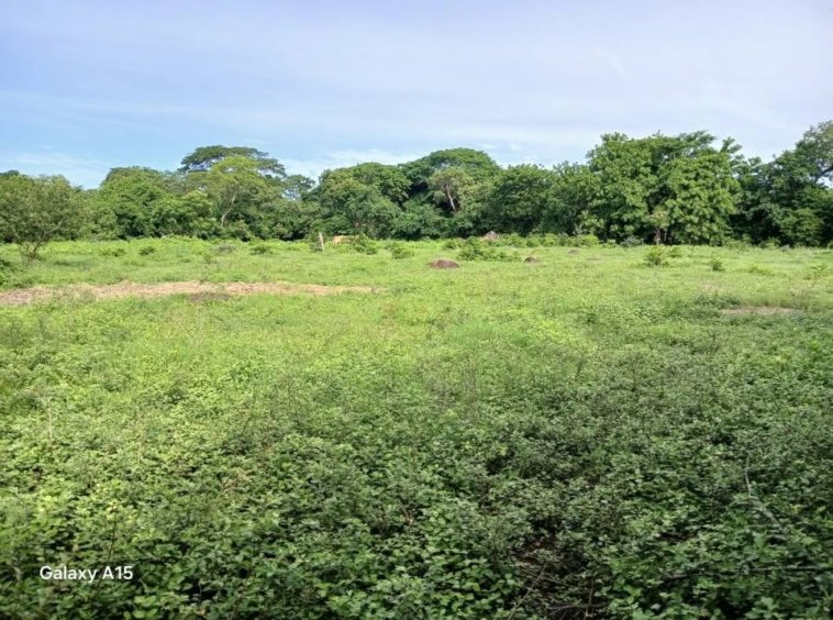 una manzana de tierra ideal para agrícola o para meter ganado o para lotificarla, plana completamente esta cerca el agua y la luz a 2 cuadras de la carretera, por la linea del tren, escritura en orden, lista para traspaso